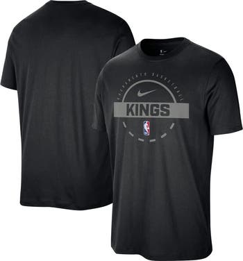Elevate your training regimen with this Sacramento Kings Authentic Practice T-Shirt from Nike. The rib-knit collar and tagless design will keep you comfortable whether you're hitting the court or relaxing at home. The printed team graphics, NBA Shield, and Nike Swoosh on the front display your Sacramento Kings Nike pride in style.