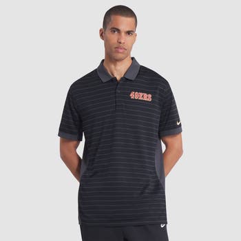 This San Francisco 49ers 2025 Rivalries Collection Sideline Victory Striped Dri-FIT Polo from Nike is an ode to a fanbase that moves more like family. An all-black design and saloon-style wordmark are nods to the franchise's legacy. Breathable pique fabric and sweat-wicking technology help deliver a dry, comfortable feel as you display loyalty to the team.