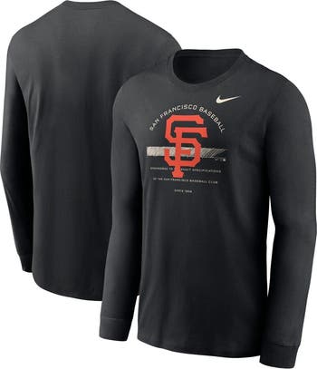 The Men's Nike Black San Francisco Giants Over Arch Performance Long Sleeve T-shirt is the perfect way to show your support for the San Francisco Giants. Made from soft cotton, this long sleeve tee features Dri-FIT technology to keep you cool and comfortable all game long. The screen print graphics of the San Francisco Giants logo and wordmark proudly display your team spirit. Whether you're cheering from the stands or watching the game at home, this t-shirt is a must-have for any Giants fan.