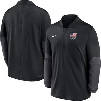 Stay covered without the bulk in this Team USA Dri-FIT Half-Zip Pullover by Nike. Its breathable French terry fabric is enhanced with sweat-wicking technology to keep you dry and comfortable. The understated team logo gives this Team USA pullover a versatile look.