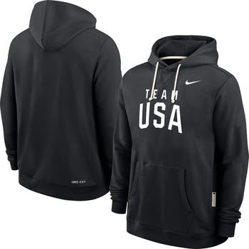 Stay warm and comfy while proudly supporting Team USA in this Standard Issue Dri-FIT Hoodie by Nike. The heavyweight French terry fabric features sweat-wicking technology and a roomy, relaxed fit for ultimate comfort. Team USA details printed prominently across the chest put your national pride front and center.