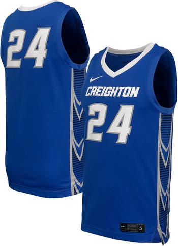 Look ready to hit the hardwood for your favorite college team in this Creighton Bluejays Replica Basketball Jersey from Nike. Its lightweight, breathable mesh fabric is enhanced with sweat-wicking Dri-FIT technology to keep you cool and dry while playing or cheering from the stands. Screen print graphics on the front and back of this Creighton Bluejays jersey provide a classic design.