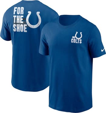 The Men's Nike Blue Indianapolis Colts Blitz Essential T-shirt is the perfect way to show your support for the Indianapolis Colts. Made from soft cotton, this T-shirt features a crew neck and screen-printed graphics that proudly display the Colts logo. Whether you're cheering on the Colts at the stadium or relaxing at home, this T-shirt is sure to become a favorite. Show your support for the Colts and add this T-shirt to your wardrobe today!