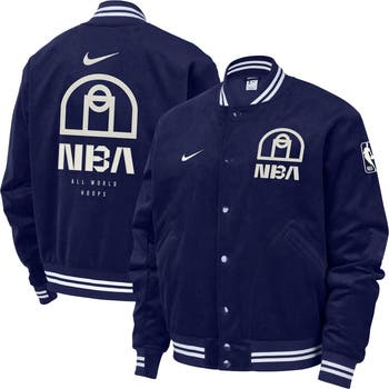 Showcase your love for the NBA in this All World Hoops Team 31 Trend Corduroy Full-Snap Bomber Jacket by Nike. It features a classic corduroy construction and a loose fit for a comfortable, relaxed feel. The soft cotton neck lining and rib-knit details add extra comfort, while chainstitch embroidery makes a strong statement about your NBA fandom.