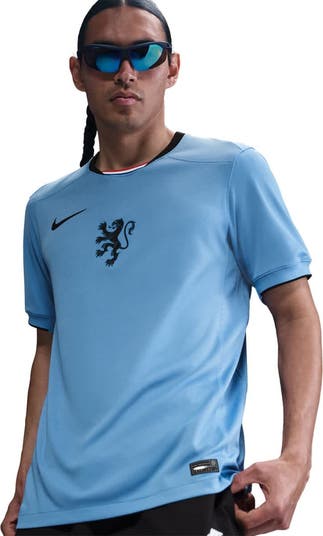 Wear your nation's colors wherever you are with this Replica Netherlands Women's National Team Jersey from Nike. Crafted with Dri-FIT technology, this 2025/26 Away jersey wicks away moisture, keeping you cool and comfortable whether you're on the pitch or cheering from the stands. The national crest proudly sewn on the left chest displays your unwavering support for your country, while the durable heat-sealed graphics ensure long-lasting vibrancy.