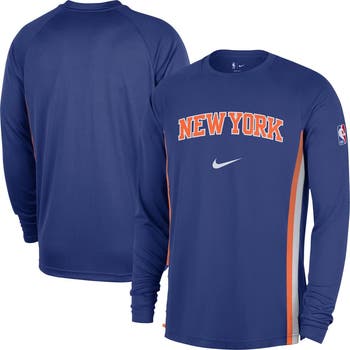 Men's Nike Blue New York Knicks 2025/26 Authentic Pre-Game Legend Dri-FIT Long Sleeve Shooting Shirt