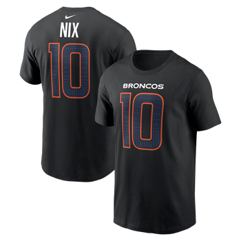 Show your support for your favorite Denver Broncos player with this Bo Nix Carbon Name & Number T-Shirt by Nike. Made from lightweight, breathable cotton jersey, it provides a comfortable feel for everyday wear. The screen-printed player name on the back and #10 on both sides are inspired by the team's official jersey, making this Denver Broncos tee an essential way to display your pride.