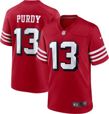 Rep the on-field look of your favorite San Francisco 49ers player with this Brock Purdy Alternate Game Player Jersey from Nike. Its heat-sealed name, numbers and team details provide a kickoff-ready aesthetic while also offering a comfortable, lightweight feel. Designed for everyday movement, this jersey has a versatile tailored fit and features mesh side panels for added ventilation as you celebrate every big play by the San Francisco 49ers this season.
