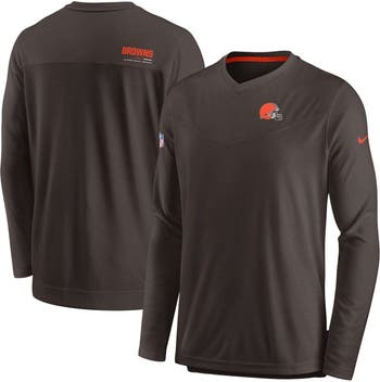 Men's Nike Brown Cleveland Browns Sideline Coach Chevron Lock Up Long Sleeve V-Neck Performance T-Shirt