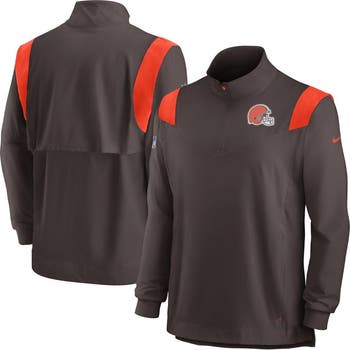 Men's Nike Brown Cleveland Browns Sideline Coach Chevron Lockup Quarter-Zip Long Sleeve Top