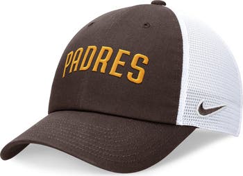 Top things off with a bold display of enthusiasm for the San Diego Padres with this Evergreen Wordmark trucker hat from Nike. The solid front panels and embroidered San Diego Padres wordmark put your fandom forward, while the mesh mid and rear panels ensure you can always enjoy a welcome breeze. The slide buckle closure ensures that your perfect fit is never more than a quick cinch away.