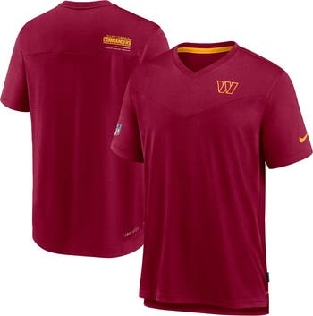 Represent your unwavering support for the Washington Commanders with this official Nike V-Neck Performance T-Shirt. Its burgundy hue and rubberized heat-sealed graphics proudly display the team's iconic Chevron Lock Up logo, making it a must-have for any devoted fan. The UPF 40+ sun protection and Dri-FIT technology ensure comfort and performance, whether you're cheering from the stands or showcasing your team spirit off the field.