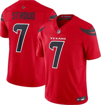 Walking into the stadium, you feel a rush of energy pass over you. You adjust your Houston Texans Nike Limited jersey and know you're ready to get swept up in the electricity of the game. Made for authenticity-seeking fans, this state-of-the-art Vapor F.U.S.E. jersey draws inspiration from your team's on-field look with reimagined seamlines and a chainmaille mesh grill at the front neck. Its updated embellishments include sublimated twill name and numbers, which are heat-transferred onto the front and back panels to show support for your favorite player. Lightweight, breathable fabric with built-in Dri-FIT technology keeps you cool and comfortable as you celebrate every big play by C.J. Stroud this season.