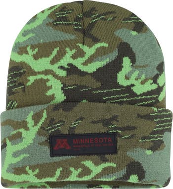 Salute military members when you keep your head warm in this Veterans Day cuffed knit hat from Nike. It features an allover camo pattern and Minnesota Golden Gophers graphics that include the school's established year. The stretch construction also ensures a snug fit for trapping in heat.
