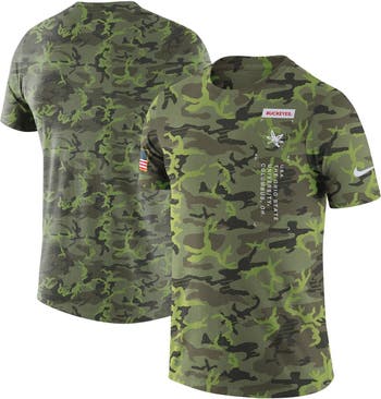 The Men's Nike Camo Ohio State Buckeyes Military T-shirt is a testament to your unwavering support for the Ohio State Buckeyes. Crafted from soft cotton, this T-shirt features a camouflage print that embodies the team's fighting spirit. The bold Ohio State Buckeyes logo proudly adorns the chest, showcasing your allegiance to the legendary college football program. Whether you're cheering from the stands or representing the Buckeyes off the field, this T-shirt is the perfect way to express your unwavering loyalty.