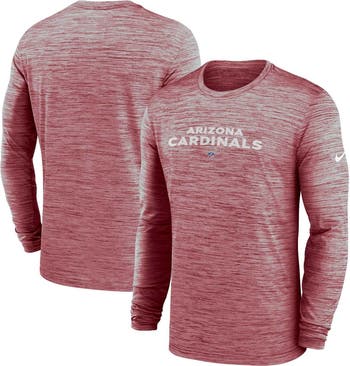 The Men's Nike Cardinal Arizona Cardinals Sideline Team Velocity Performance Long Sleeve T-shirt is the perfect way to show your support for the Arizona Cardinals. Made from breathable polyester, this shirt features Dri-FIT technology to keep you cool and comfortable all game long. The screen print graphics and crew neck design give this shirt a classic look that will never go out of style. Whether you're cheering on the Cardinals from the stands or just relaxing at home, this shirt is a must-have for any fan.