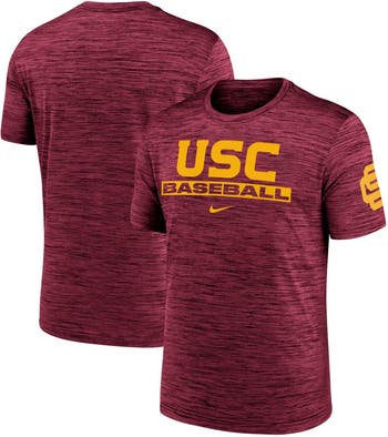 Stay comfortable during the heat of baseball season by wearing this USC Trojans Velocity Baseball Wordmark Stack Performance T-Shirt from Nike. It features sweat-wicking Dri-FIT technology to keep you cool and dry all day. A cross-dyed pattern highlights the USC Trojans details printed on the chest and sleeve.