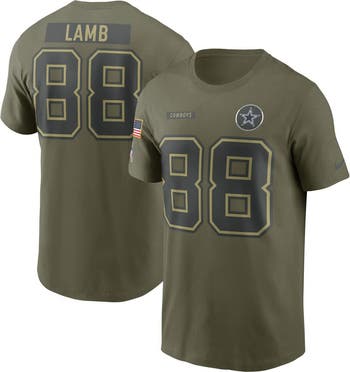 Join the Dallas Cowboys in honoring those who bravely serve our country with this CeeDee Lamb 2025 Salute to Service Name & Number T-Shirt by Nike. It replicates the military-inspired design and American flag patch the team wears. Lightweight jersey fabric keeps you cool and comfortable as you support your favorite Dallas Cowboys player and a worthy cause in this CeeDee Lamb tee. The NFL does not profit from the sale of Salute to Service products. Charitable contributions are awarded by the NFL Foundation to the NFL's Salute to Service nonprofit military partners.
