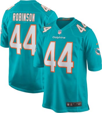 Rep the on-field look of your favorite Miami Dolphins player with this Chop Robinson Fashion Game Jersey from Nike. Its screen print name, numbers and team details provide a kickoff-ready aesthetic while also offering a comfortable, lightweight feel. Designed for everyday movement, this jersey has a versatile tailored fit and features mesh side panels for added ventilation as you celebrate every big play by the Miami Dolphins this season.