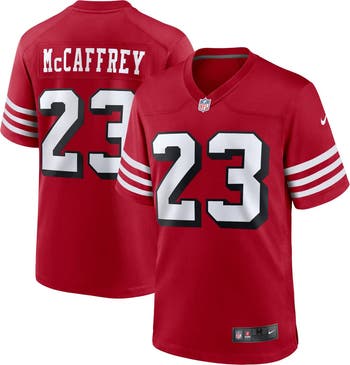 Rep the on-field look of the newest member of your San Francisco 49ers with this Christian McCaffrey Alternate Game jersey from Nike. Its heat-sealed name, numbers and team details provide a kickoff-ready aesthetic while also offering a comfortable, lightweight feel. Designed for everyday movement, this jersey has a versatile tailored fit and features mesh side panels for added ventilation as you celebrate every big play by the San Francisco 49ers this season.