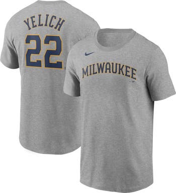 Men's Nike Christian Yelich Gray Milwaukee Brewers Name & Number T-Shirt