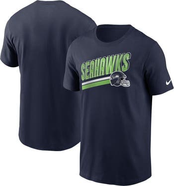 The Men's Nike College Navy Seattle Seahawks Essential Blitz Lockup T-shirt is the perfect way to show unwavering support for the Seattle Seahawks. Made from soft cotton, this comfortable tee features screen-printed graphics that proudly display the Seahawks logo and team name. Whether cheering from the stands or showcasing team spirit, this t-shirt is a must-have for any Seahawks fan.