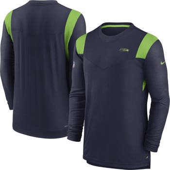 The Men's Nike College Navy Seattle Seahawks Sideline Tonal Logo Performance Player Long Sleeve T-shirt is the ultimate way to show your unwavering support for the Seattle Seahawks. Officially licensed by the NFL, this top-quality gear boasts heat-sealed appliques with intricate silicone details, ensuring a striking visual appeal. Perforated chest and back panels enhance breathability, while rib-knit insets at the shoulders provide both comfort and a stylish touch. Whether you're cheering from the stands or watching the game at home, this long-sleeve t-shirt guarantees both comfort and style, proudly showcasing your Seahawks pride.