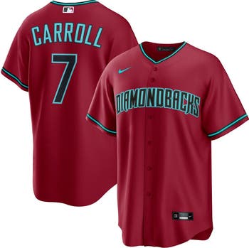Bring home the excitement of the game with this Corbin Carroll Arizona Diamondbacks Alternate 2 Replica Jersey from Nike. It features Corbin Carroll's name and number in sublimated twill, letting you rep your favorite player in style. With a classic front button design and a comfortable standard fit, it's perfect for wearing at the ballpark or anywhere you want to show your Arizona Diamondbacks pride.