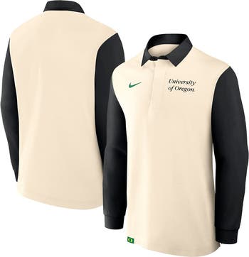 Stay warm in a traditional look with this Oregon Ducks Rugby Long Sleeve Shirt by Nike. Its heavyweight double-knit fabric provides comfortable warmth without a bulky feel. Understated team details perfectly complement the two-tone design of this Oregon Ducks shirt.