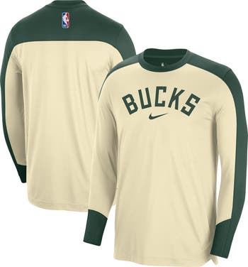 Get ready for the upcoming season with this Milwaukee Bucks 2024/25 Authentic Pre-Game Legend Long Sleeve Shooting Shirt from Nike. Made with 100% polyester, this shirt features raglan contrast-color sleeves and side splits at the waist hem for a stylish and comfortable fit. In addition, the heat-sealed team wordmark on the chest and Nike logo below leave no doubt which team you're repping.