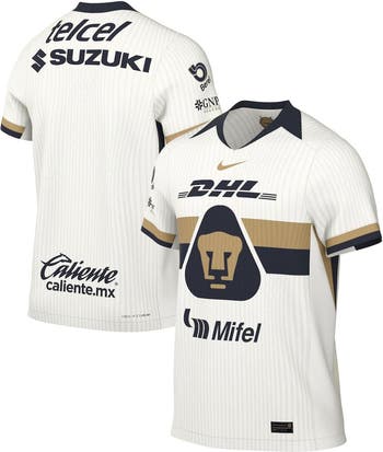 It's not often you can find a jersey that encapsulates both tradition and modern performance. This authentic, slim-fit Pumas jersey is designed to follow your body's shape closely to let you move freely, with open-hole fabric and ventilated mesh panel inserts to keep you cool and comfortable. It features a heat-sealed Nike and team logo on the chest, displaying your loyalty in style. The tagless collar and woven Authentic Nike jock tag on the left hem add to the comfort and quality of this jersey, making it a must-have for any Pumas fan.