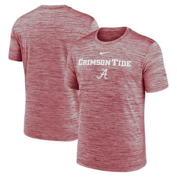 Wear the same gear as the Alabama Crimson Tide with this 2025 Sideline Velocity Performance T-Shirt by Nike. It features sweat-wicking Dri-FIT technology to keep you dry and cool, whether you're at the game or playing yourself. The cross-dyed pattern adds visual interest to this lightweight Alabama Crimson Tide tee.