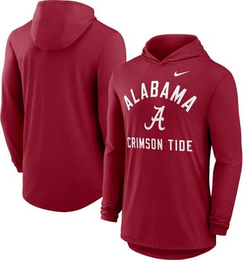 Upgrade your Alabama Crimson Tide tee with this Classic Arch Tri-Blend Performance Long Sleeve Hoodie T-Shirt by Nike. It combines lightweight jersey fabric and sweat-wicking Dri-FIT technology to keep you cool and dry. The rounded droptail gives this Alabama Crimson Tide shirt added coverage for a more comfortable fit and feel.
