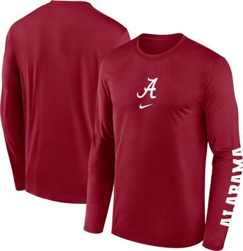 Showcase your Alabama Crimson Tide pride in bold style with the Nike Primetime Center Lockup Two-Hit Legend Long Sleeve T-Shirt. Made from 100% polyester, this shirt is both comfortable and durable. The screen print team logo at the center chest and wordmark down the left arm proudly showcase your Alabama Crimson Tide pride. This long sleeve tee is a must-have for any Alabama Crimson Tide fan looking to add some team spirit to their wardrobe.
