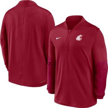 Support your team with this Washington State Cougars Dri-FIT Half-Zip Pullover from Nike. Its Dri-FIT technology wicks away moisture, ensuring you stay dry and comfortable whether you're working out or cheering on the Washington State Cougars. The embroidered rubberized team logo applique at the left chest proudly displays your team loyalty, making it the perfect addition to your game-day wardrobe.