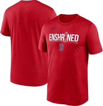 The Men's Nike David Ortiz Red Boston Red Sox Legend Enshrined Performance T-shirt is a must-have for any devoted Boston Red Sox fan. Nike Dry fabrics wick away sweat, keeping you comfortable and focused on the game. Screen-printed graphics proudly display the iconic Boston Red Sox logo, showcasing your unwavering support for the team. Whether you're cheering from the stands or simply showing your Red Sox pride, this t-shirt is the perfect way to represent your favorite MLB team.