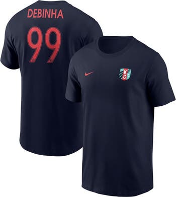 Represent the Kansas City Current with pride in this Nike Debinha Core Crew Neck T-Shirt. Made from 100% cotton, this tee provides breathable comfort that lasts all day long. The iconic team logo is proudly displayed on the left chest, while the back features Debinha's name and number, making it clear who you're rooting for.