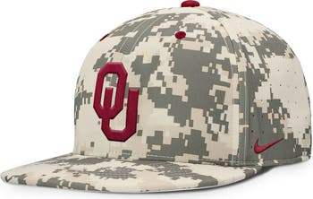 Stay dry and cool in the same headwear as your Oklahoma Sooners with this 2025 Dugout True Performance Fitted Hat by Nike. It combines Dri-FIT and AeroBill technologies with perforated panels to wick away sweat and provide optimum breathability. An allover digital camo pattern gives this Oklahoma Sooners hat a modern look.