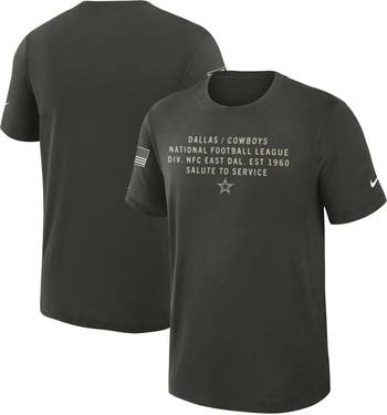 Join the Dallas Cowboys in supporting those who bravely serve our country with this 2025 Salute to Service Sideline Slub Dri-FIT T-Shirt by Nike. It features military-inspired team details and a U.S. flag patch displayed above the initiative's ribbon. The lightweight slub fabric is enhanced with sweat-wicking technology to keep you dry and cool in this distinct Dallas Cowboys tee. The NFL does not profit from the sale of Salute to Service products. Charitable contributions are awarded by the NFL Foundation to the NFL's Salute to Service nonprofit military partners.