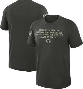 Join the Green Bay Packers in supporting those who bravely serve our country with this 2025 Salute to Service Sideline Slub Dri-FIT T-Shirt by Nike. It features military-inspired team details and a U.S. flag patch displayed above the initiative's ribbon. The lightweight slub fabric is enhanced with sweat-wicking technology to keep you dry and cool in this distinct Green Bay Packers tee. The NFL does not profit from the sale of Salute to Service products. Charitable contributions are awarded by the NFL Foundation to the NFL's Salute to Service nonprofit military partners.