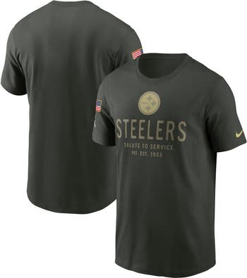 Join the Pittsburgh Steelers in supporting those who bravely serve our country with this 2025 Salute to Service Sideline Primary Edge Dri-FIT T-Shirt by Nike. It replicates the military-inspired details and American flag patch the team wears. Lightweight jersey fabric is combined with sweat-wicking technology to keep you dry and cool in this patriotic Pittsburgh Steelers tee. The NFL does not profit from the sale of Salute to Service products. Charitable contributions are awarded by the NFL Foundation to the NFL's Salute to Service nonprofit military partners.