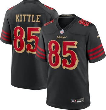 This San Francisco 49ers 2025 Rivalries Collection Game Jersey from Nike is an ode to a fanbase that moves more like family. The authentic look features an all-black design with classic saloon-style numbers and gold accents representing the franchise's storied legacy. Breathable mesh panels combined with durable, smooth tricot fabric keep you dry and comfortable as you support George Kittle.