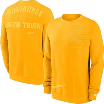 Men's Nike Gold Milwaukee Brewers Statement Ball Game Fleece Pullover Sweatshirt