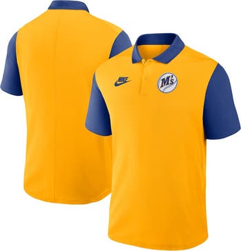 Men's Nike Gold/Royal Seattle Mariners Cooperstown Collection Color-Block Victory Performance Polo