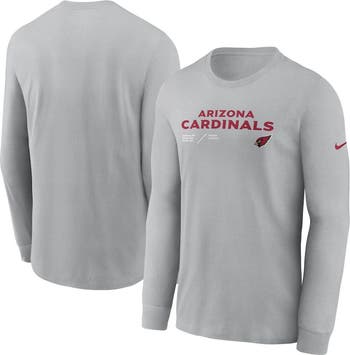 The Men's Nike Gray Arizona Cardinals Sideline Infograph Lock Up Performance Long Sleeve T-Shirt is the perfect way to show your support for the Arizona Cardinals. Made from a comfortable cotton and polyester blend, this long sleeve t-shirt features Dri-FIT technology to keep you cool and dry, even during the most intense games. The screen print graphics and heat-sealed NFL shield on the right sleeve proudly display your Cardinals pride. Whether you're cheering from the stands or watching the game at home, this t-shirt is a must-have for any Cardinals fan.