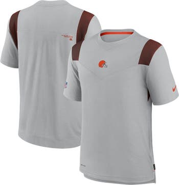 The Men's Nike Gray Cleveland Browns Sideline Player UV Performance T-shirt is the ultimate way to show your unwavering support for the Cleveland Browns. Crafted from lightweight, breathable fabric, this shirt ensures you stay cool and comfortable throughout the game. The heat-sealed applique with silicone details and perforated chest and back panels add a stylish touch to this classic tee. Whether you're cheering from the stands or watching the game at home, this shirt guarantees you'll feel like a true member of the team.
