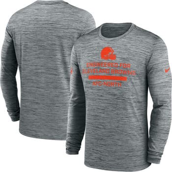 Wear the same gear as the Cleveland Browns with this 2025 Sideline Velocity Performance Long Sleeve T-Shirt by Nike. It features sweat-wicking Dri-FIT technology to keep you dry and cool, whether you're at the game or playing yourself. The cross-dyed pattern adds visual interest to this lightweight Cleveland Browns tee.