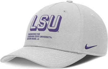 Get excited about your LSU Tigers as they take the field with this Dust Pinched Rise Adjustable Hat from Nike. As part of the Sideline gear worn by players and staff outside of games, this hat embodies the same spirit and determination seen from the team. The high-depth design offers a roomier, comfortable fit for both sport and casual wear. With its embroidered team wordmark featuring rubberized print text on the front and logo on the back, it's the perfect way to represent the school on game day or any day