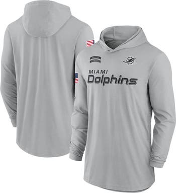 Men's Nike Gray Miami Dolphins 2024 Salute to Service Lightweight Performance Long Sleeve Hooded T-Shirt