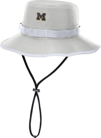 Stay cool and shaded while cheering on the Michigan Wolverines in this 2025 Sideline Apex Boonie Bucket Hat by Nike. It's constructed from durable ripstop fabric for a sturdy feel and features eyelets on the sides to provide enhanced airflow. An adjustable chin strap keeps this Michigan Wolverines hat secure and in place throughout the day.